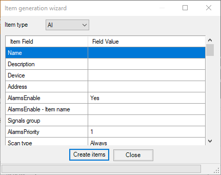 Note: The usefulness of Automatic Generation allows you to insert groups of items of one type at a time (Analog, Digital, Text).
