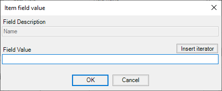 - Select the field in the Item Generation wizard property grid, and then double-click on it to open the Item Field Value input window.