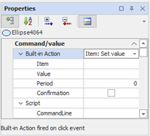 The properties of the Command / Value group allow you to configure the animation as an element of control or to change the value of an item. Depending on the animation some groups of properties may not be available.