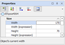 The properties of the Size class allow you to specify the current size of the animation and optionally specify expressions that dynamically resize based the object. The size is expressed in pixels.