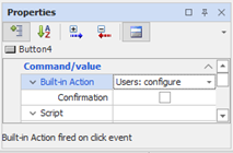 To call up the user configuration window, the Users: Configuration option must be set for the Action property of the element.