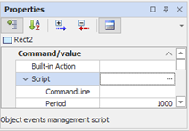The Script entry is contained in the Execution or Command/Value section, depending on whether it is a page or a graphic object, respectively, or is displayed by selecting the Script action in the case of the Action scripts.