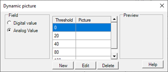 The table displays the configured thresholds. The thresholds can be added, modified or deleted with the buttons below. You can preview the selected image in the Preview frame.