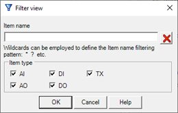 For the rapid identification of Items or Item groups within the database, the Item list window provides the Display Filter and Find Item functions.