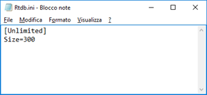 - Navigate to the file RTDB.INI and enter the desired size to the Size entry inside [Unlimited] section, as in the following example: