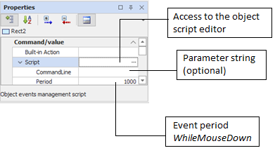 The script allows you to define custom procedures for managing the events generated by the object in response to the mouse action, and in particular: