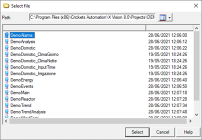 - Select the command Open ... from the menu File. The system opens the selection window of the page to open: