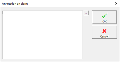 Selecting the Comment command, the system displays the Alarm comment window, shown in the following figure.