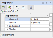 Option button specific properties: Appearance category