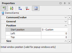 The properties of the Position group define the location where the synoptic window will be displayed on the screen.