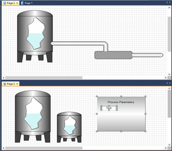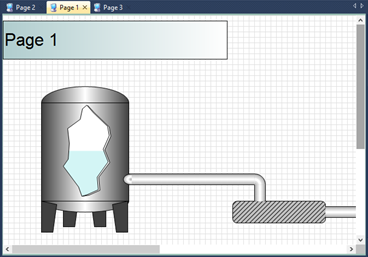 The drawing area hosts the synoptic pages in development. X Editor is an MDI environment (Multiple Document Interface) that allows you to work with multiple pages open at once, and to copy elements from one page to another. For each open page displays a tab; to navigate between open pages, simply click on tabs.