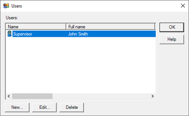 The New, Edit and Delete buttons respectively allow you to enter a new user and edit or delete an existing user.