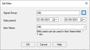 You can also remove the filter on the applied item name (leaving the other filter parameters unaltered such as the period or the signaling group) by selecting the Remove item filter command from the Tools menu or from the context menu.