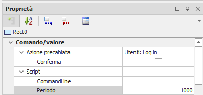 Per consentire all’utente di effettuare un’operazione di LogIn è necessario prevedere un apposito elemento di comando (animazione, menu o evento da tastiera) per il quale sia stata configurata l’azione Utenti: LogIn.