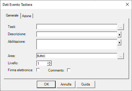 Le restrizioni di accesso relative all’azione (comando) associata ad un oggetto grafico, ad una voce di menu o ad un evento da tastiera sono definite configurandone opportunamente l’area (o le aree) di appartenenza ed il Livello di sicurezza: le proprietà che definiscono tali parametri sono denominate Area di Sicurezza e Livello di Sicurezza (per alcuni elementi tali proprietà sono indicate semplicemente con i termini Area e Livello).