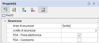 Per le animazioni, tali proprietà sono raggruppate nella categoria Sicurezza.