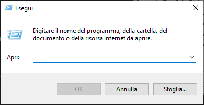 1. Il sistema operativo mostra la finestra Esegui: