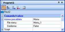 Configurare l'azione Menu per un'animazione Per visualizzare un menu occorre configurare opportunamente un’animazione, selezionando l’azione Menu e specificando il menu da visualizzare. Nell’esempio seguente l’animazione visualizza il menu “Menu_1”.