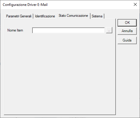 Specifica il nome dell’item utilizzato per la visualizzazione dello stato di comunicazione del driver. Il driver imposta a 1 questo item se il dispositivo controllato non risponde.