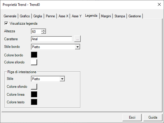 La scheda Legenda contiene i seguenti campi di configurazione: