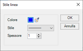Il pulsante dei campi Stile relativi alle linee della griglia e delle penne consente di accedere alla finestra di configurazione Stile Linea, che permette di definire gli attributi della linea utilizzata per tracciare rispettivamente la griglia e gli andamenti.