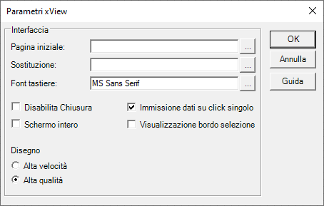 Se selezionato, il modulo X-View viene attivato in modalità schermo intero (occupa cioè l’intera area visibile dello schermo). In tale condizione la barra del titolo non è visibile, e la chiusura della finestra, se abilitata, deve essere eseguita da tastiera mediante la pressione dei tasti ALT+F4.