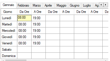 1. Selezionare la scheda del mese di cui configurare gli orari.