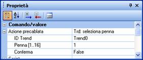 Ciascun oggetto trend può essere controllato da animazioni o eventi da tastiera configurando opportunamente l’azione ad essi associata e identificando l’oggetto Trend da controllare.