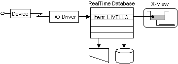 Il modulo di comunicazione trasforma il segnale, riconosce l'Item cui è legato (LIVELLO) e ne aggiorna il campo Valore nel DataBase RealTime.