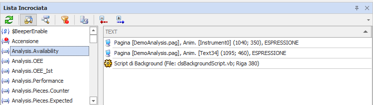 In particolare, la Lista Incrociata è in grado di esplorare i riferimenti (item o variabili locali) contenuti in: