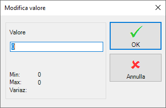 Nota: i valori numerici vengono inseriti utilizzando il separatore decimale locale, secondo quando definito nelle Impostazioni Internazionali del Pannello di Controllo di Windows.