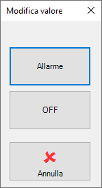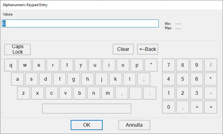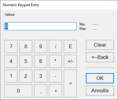 • Finestra Immissione Valore standard per l’immissione da tastiera di valori analogici o testo