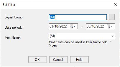 Per disattivare il filtro di visualizzazione e visualizzare l’intero contenuto dei log storici impostare il filtro su nome item a “(tutti)”.