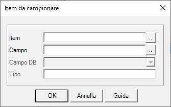 Specifica il nome dell’item da campionare. Facendo click sul pulsante di selezione a lato del campo viene proposta la finestra per la selezione dell’item e del campo item da campionare.