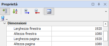 Le proprietà del gruppo Dimensioni definiscono le dimensioni del sinottico e della finestra che lo contiene, espresse in pixel.