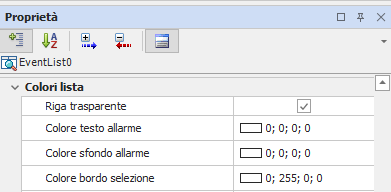 Le proprietà della categoria Colori Lista consentono di configurare colori con cui sono rappresentati i dati all’interno della lista
