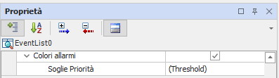 Le proprietà del gruppo Colori Allarmi consentono di abilitare la rappresentazione degli allarmi con colori diversificati in base alla loro priorità