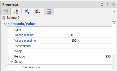 Proprietà specifiche Spinner: categoria Comando/Valore