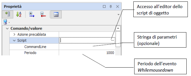Ad ogni oggetto grafico comandabile è possibile associare uno script in aggiunta all’esecuzione di un’azione precostituita.