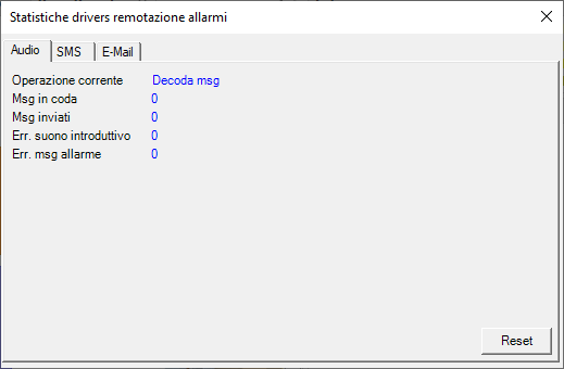 I driver di tele-notifica degli allarmi rendono disponibili dettagliate statistiche di comunicazione che risultano utili per il tuning dell’impianto e per risolvere eventuali problematiche relative alla comunicazione. Le statistiche relative a ciascun driver sono riassunte in un’unica finestra di pratica consultazione.